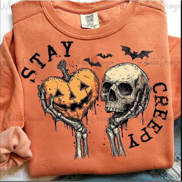 Stay Creepy PNG | Retro Dripping Heart Halloween Design | Skeleton Hand Spooky Sublimation Graphic | Grunge Horror Trendy PNG