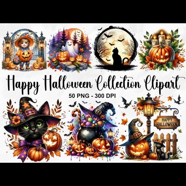 Halloween Magic: 10 High-Resolution Watercolor Clip Arts – Perfect for Scrapbooking, Card Making & Digital Creations