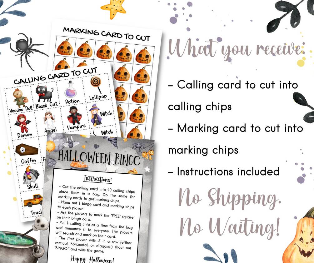 πŸŽƒ Printable Halloween Bingo – 50 Unique Cards w/ Labels Instant download, ready to print, no editing needed! Perfect for kids, teens, and adults, this fun Halloween bingo set is ideal for parties, classrooms, and family game nights. Includes 50 unique bingo cards, calling & marking chips, and instructions. Just print, play, and enjoy spooky fun!