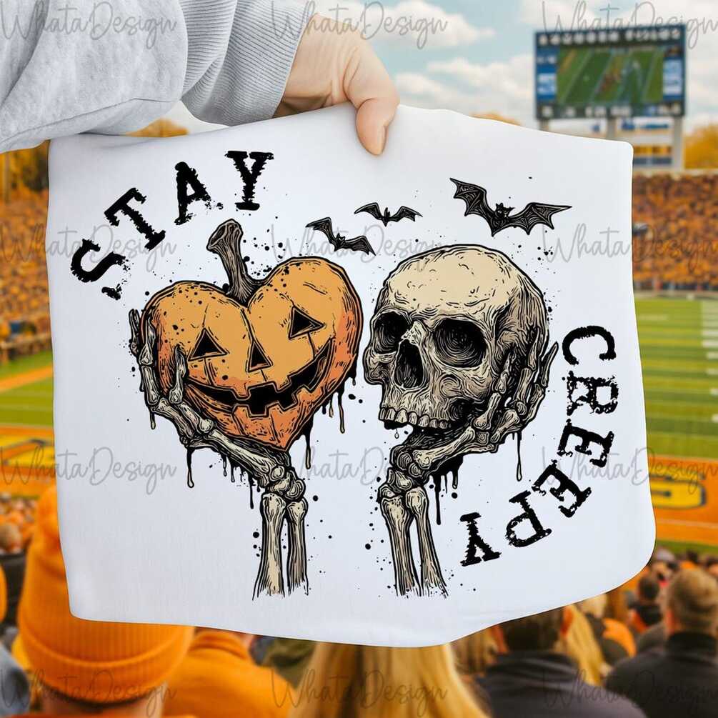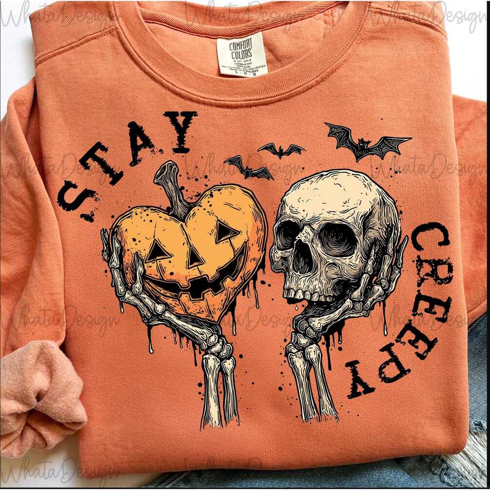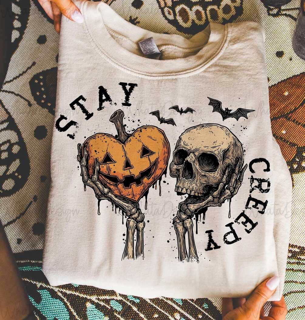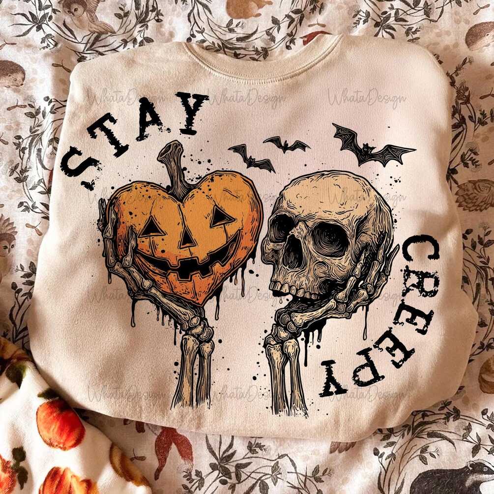 Stay Creepy PNG – Retro dripping heart with skeleton hand spooky design. Perfect for shirts, mugs, bags, stickers, and more! Instant digital download, high-quality PNG (300 DPI). Personal & small business use only.