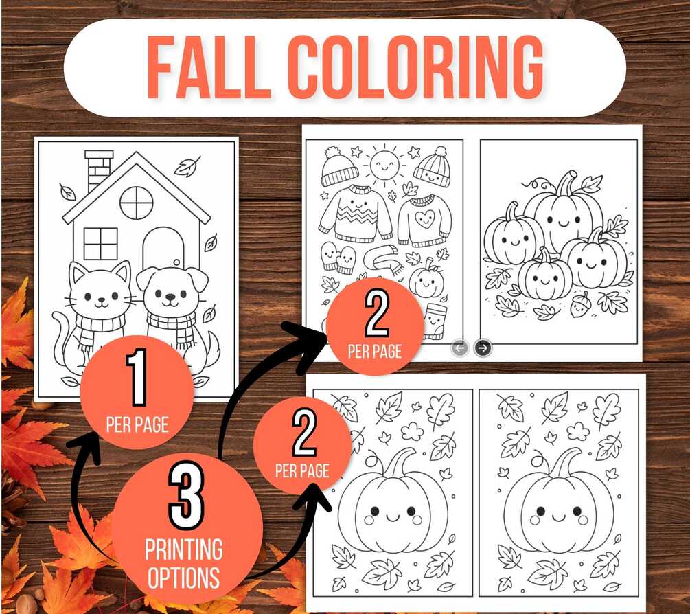 • 1 PDF with 70 Fall Coloring Pages (2 per page โ€“ same design both sides)