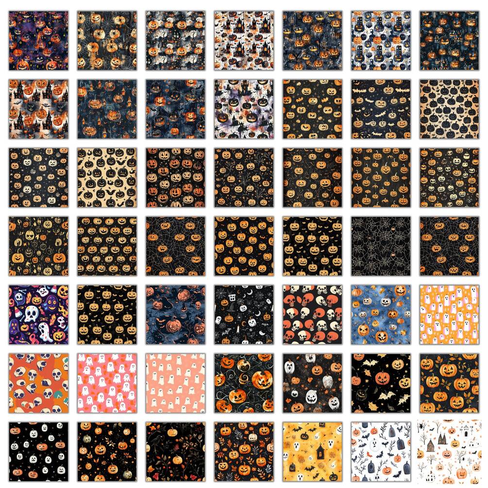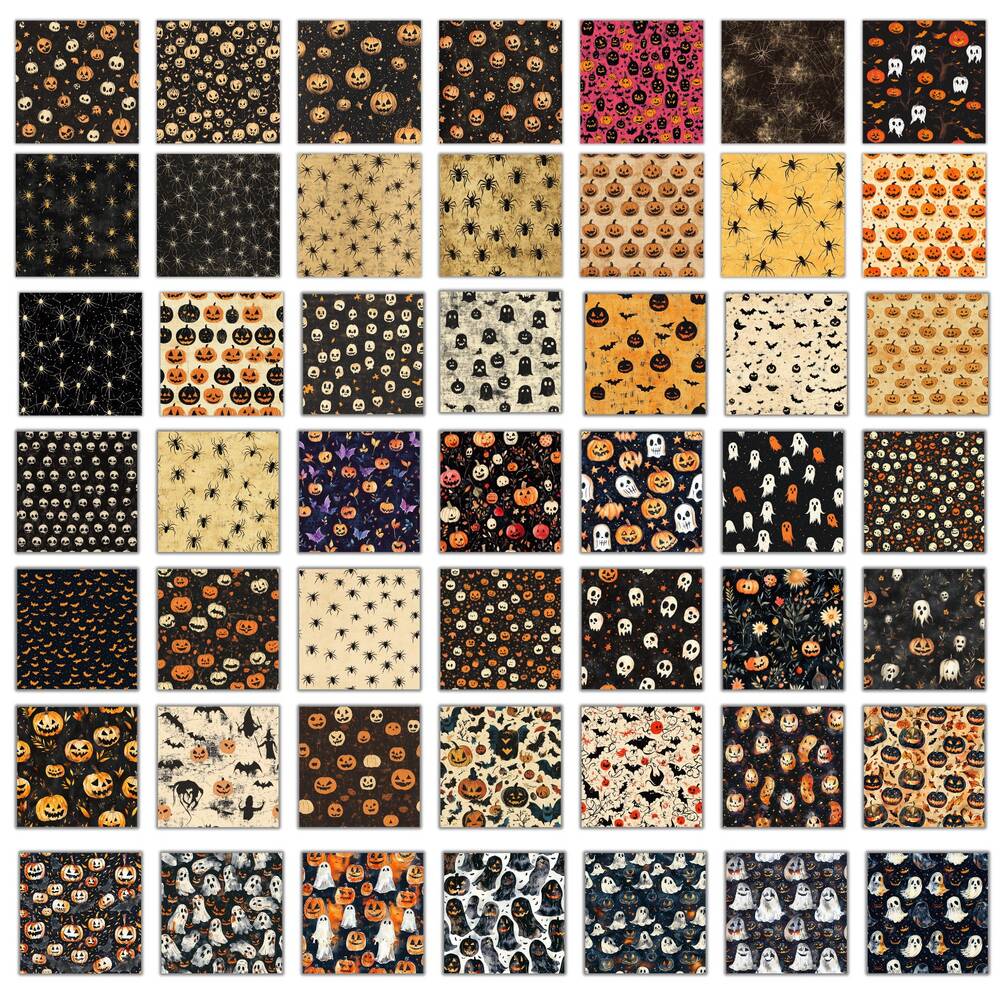 250+ Halloween Digital Paper Bundle | Vintage Halloween PNG | Classic Scrapbook Papers | Pink & Orange Skulls, Spiders & Textures